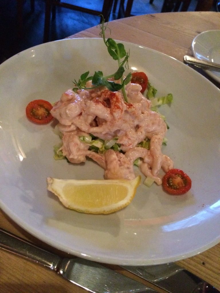I started with a beef carpaccio dressed with celeriac and shavings of parmesan, while my companion tried the prawn cocktail. The celeriac was the most notable flavour in the dish, perhaps to the beef’s detriment, but wasn’t overpoweringly dressed. So often dressings like this are lip-swallowingly tarte, but here the softness of the beef was complemented nicely, strong parmesan interspersed amongst the textures.