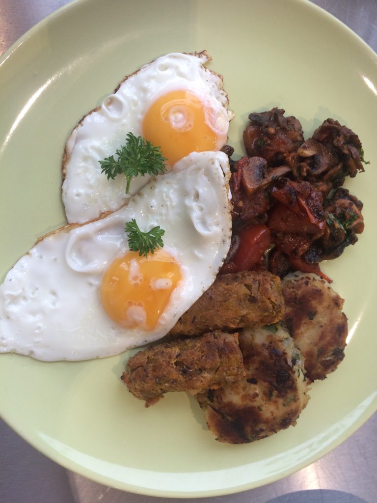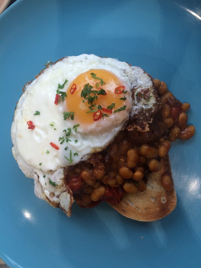 We popped up early on a Saturday morning for breakfast and made a couple of easy choices to have a standard vegetarian breakfast and some spiced beans on toast.